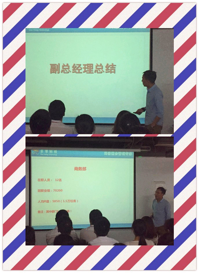 蓝总发言结束之后,便是公司副总王总发表讲话。王总主要对互联网部门7月的业绩情况做了细致的分析,指出了不足和相关的解决方案。同时王总还将业绩任务细分化,为提高部门员工的业绩出谋划策。