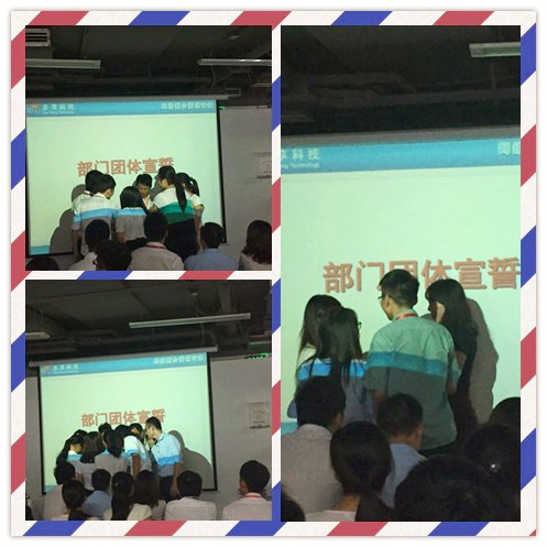 会议最后一项是各部门宣誓,多享的同事们团结一心,把握今天我们任重而道远,展望明天,我们豪情满怀!相信在我们多享同事们的共同努力下,公司的明天一定会更加灿烂!