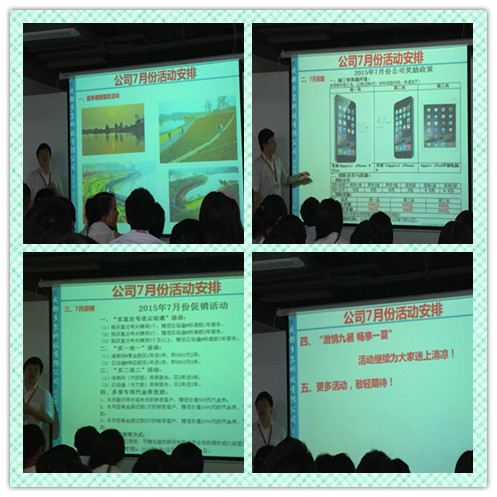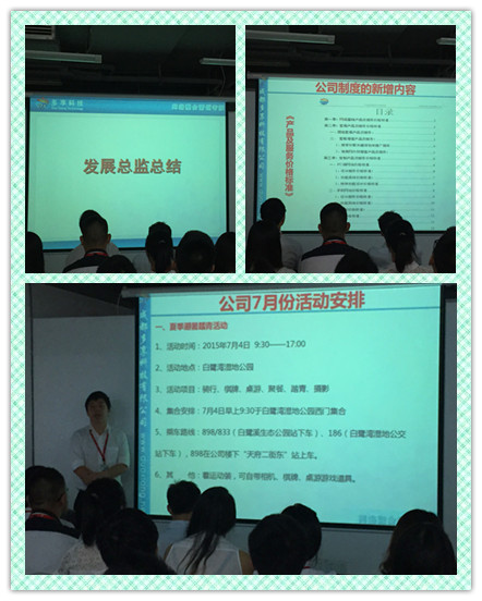 就职仪式结束之后,由公司发展总监发言,刘总对6月公司相关制度的更新做了说明同时也发布了7月份的相关工作安排。